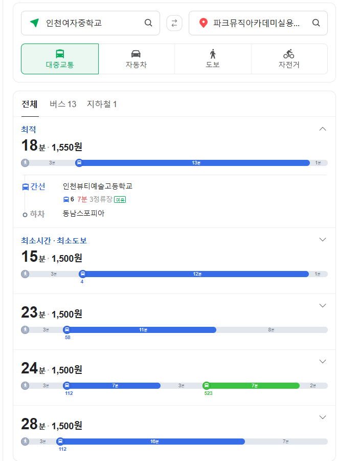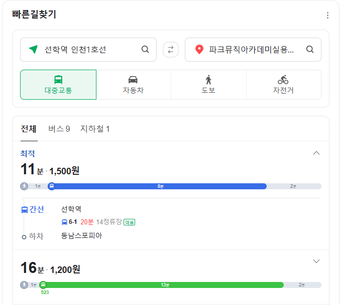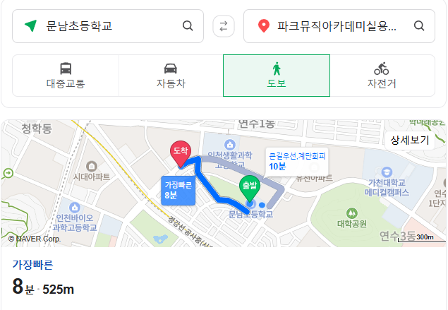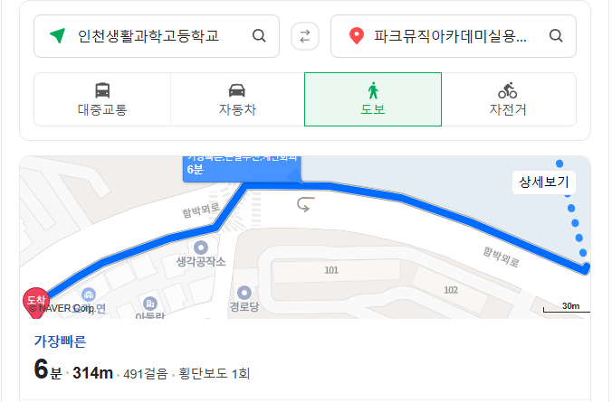 인천생활과학고등학교 직진 3m→ 오른쪽 방향 186m→ 펠메쉬카 방면으로 횡단보도 건너기 → 펙메쉬카에서 오른쪽 방향 98m→ 파크뮤직아카데미 실용음악학원 도착! 2층~
