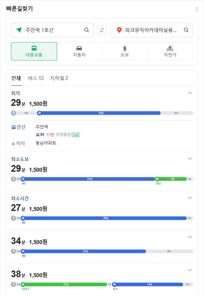 2. 주안역 <지하철 1호선, 인천 2호선> : 27분