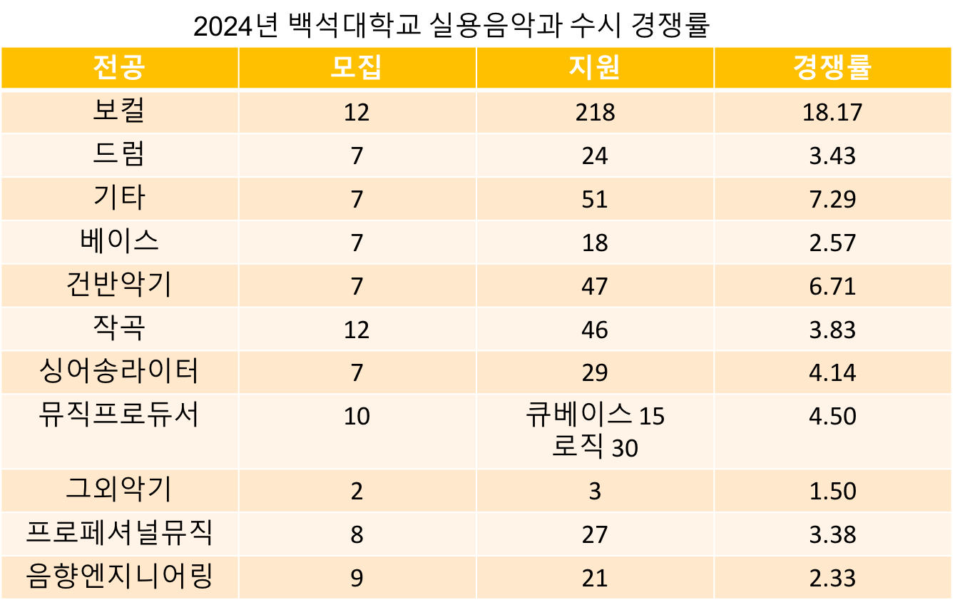 ▶︎모집인원 : 보컬 12명, 싱어송라이터 7명, 드럼 7명, 베이스 7명, 기타 7명, 건반 7명, 관악기/타악기 및 그 외 악기 2명, 프로듀서 10명, 음향엔지니어링 9명,